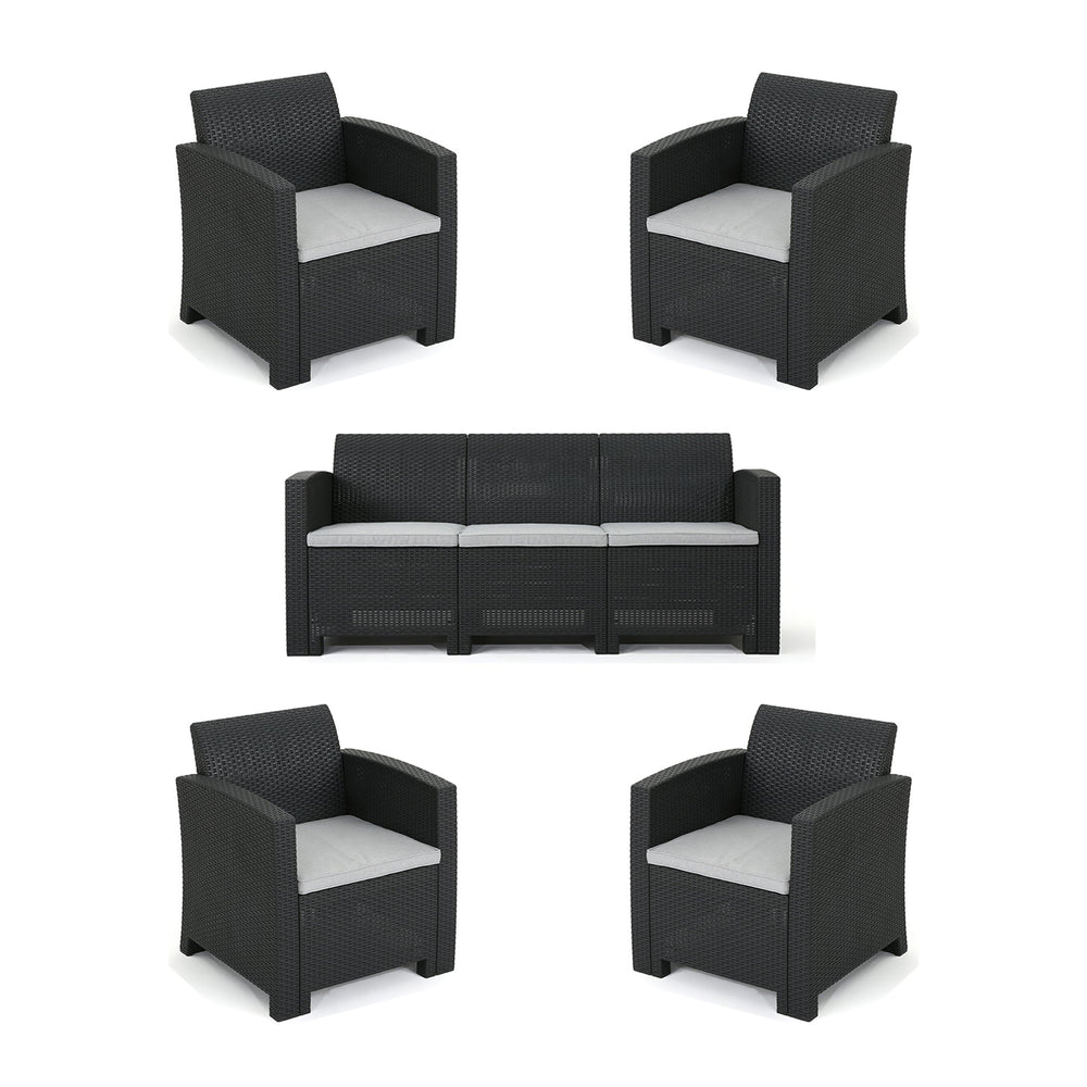 Outdoor Faux Wicker Rattan Style Chat Set With Water Resistant Cushions, 5 Pieces Set - Charcoal / Light Gray 114.43 lb