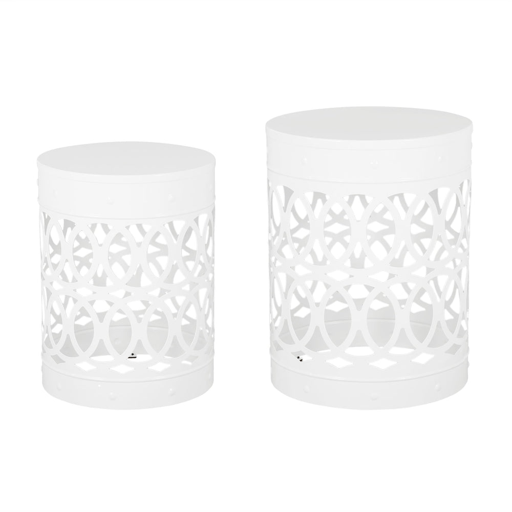 Outdoor Metal (Set of 2) End Table - White 13.75"W x 13.75"D x 18.0"H - 9.26 lb