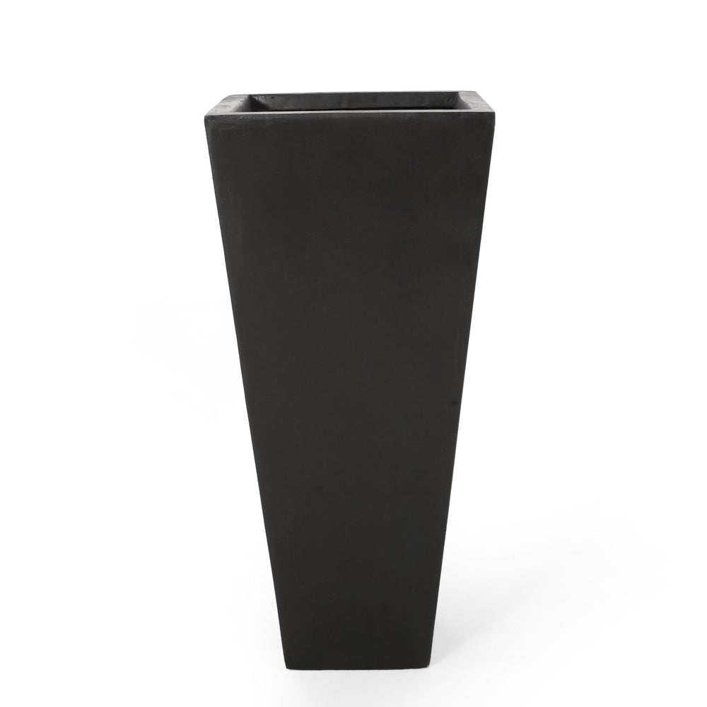 Outdoor Modern Cast Stone Planter - Black 13.0"W x 13.0"D x 28.5"H - 22.93 lb