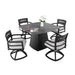5 Piece Outdoor Pedestal Dining Set, Rounded Square Table With Flared Base And 4 Swivel Rockers - Ember Black 44.17"W x 44.17"D x 29.53"H - 89.28 lb
