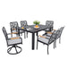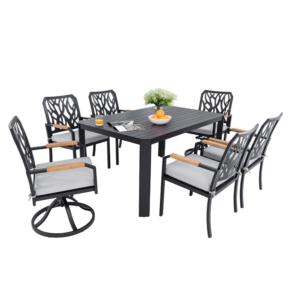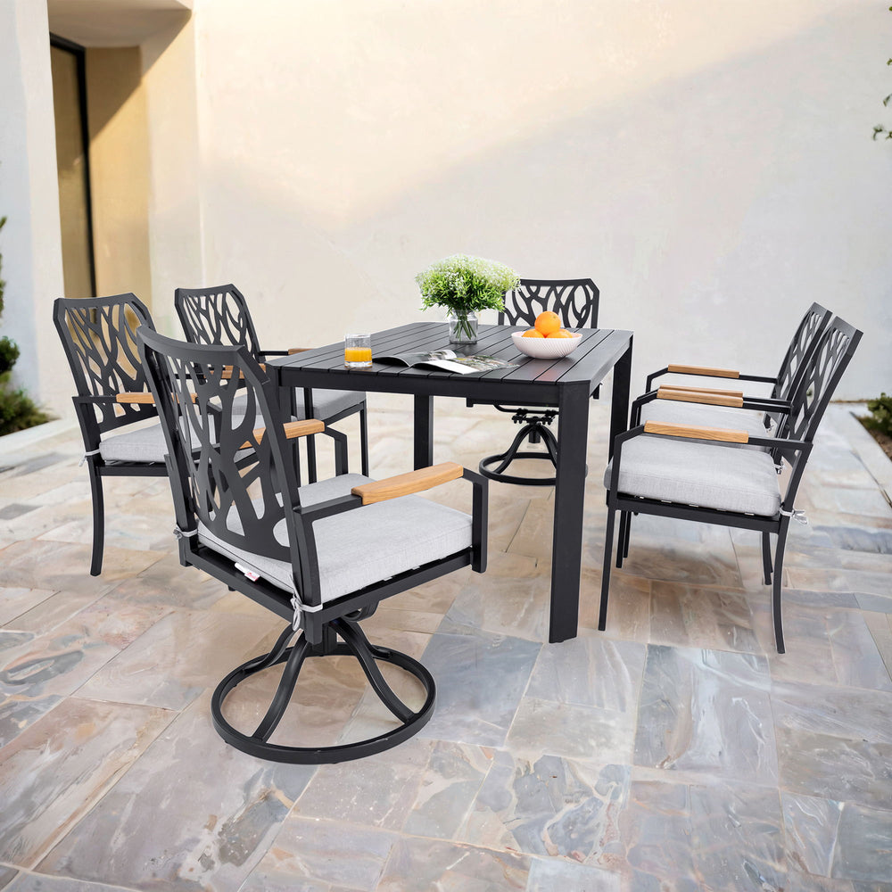 7 Pieces Outdoor Patio Furniture Set, Modern Dining Set With 6 Swivel Rockers Sunbrella Fabric, Rectangular Table With Umbrella Hole - Bourbon Brown 59.0"W x 35.5"D x 28.7"H