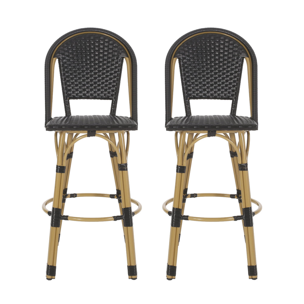 Outdoor Rattan And Aluminum French Barstools (Set of 2) - Black 19.68"W x 22.04"D x 45.66"H - 10.8 lb