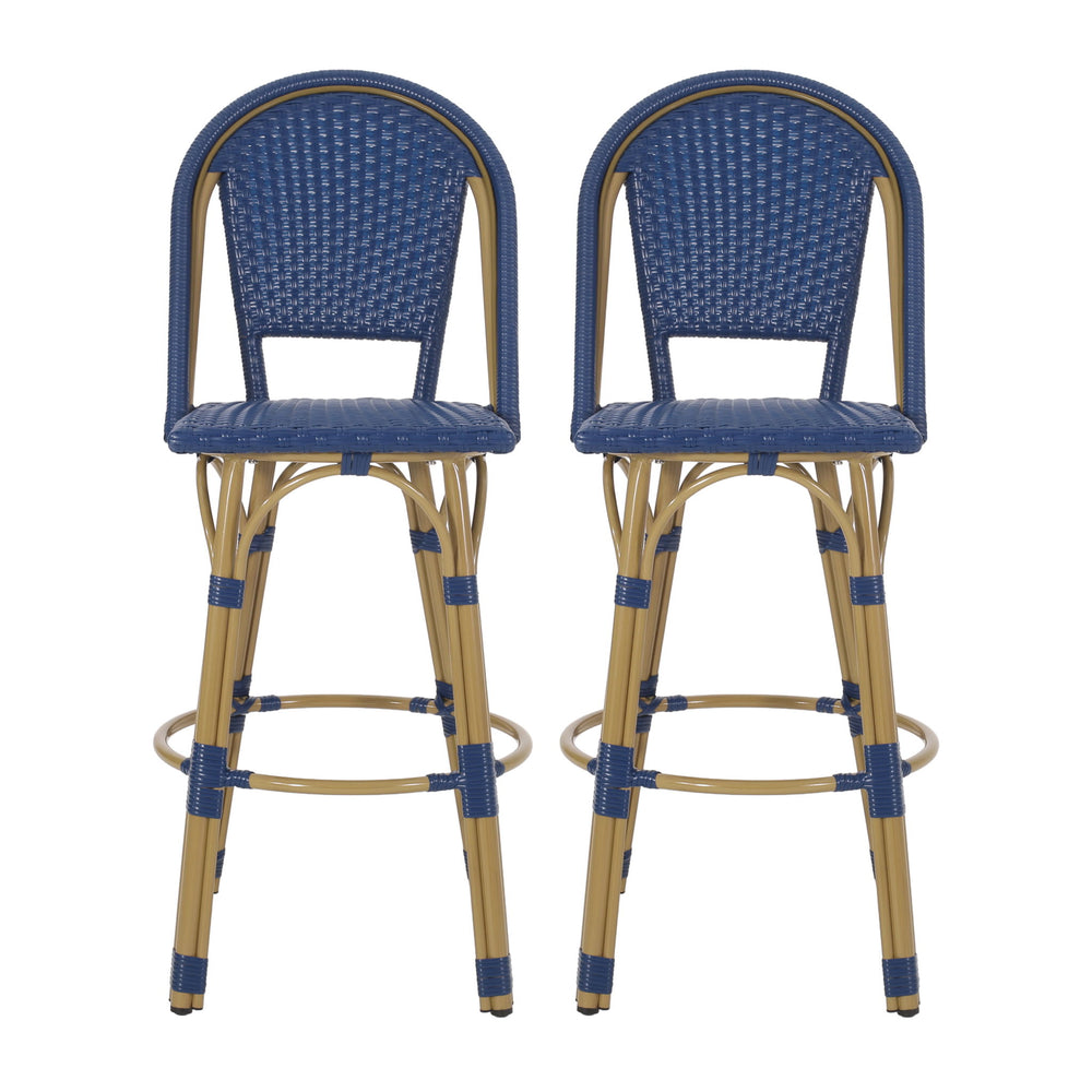 Outdoor Rattan And Aluminum French Barstools Set - Navy Blue 19.68"W x 22.04"D x 45.66"H - 10.8 lb