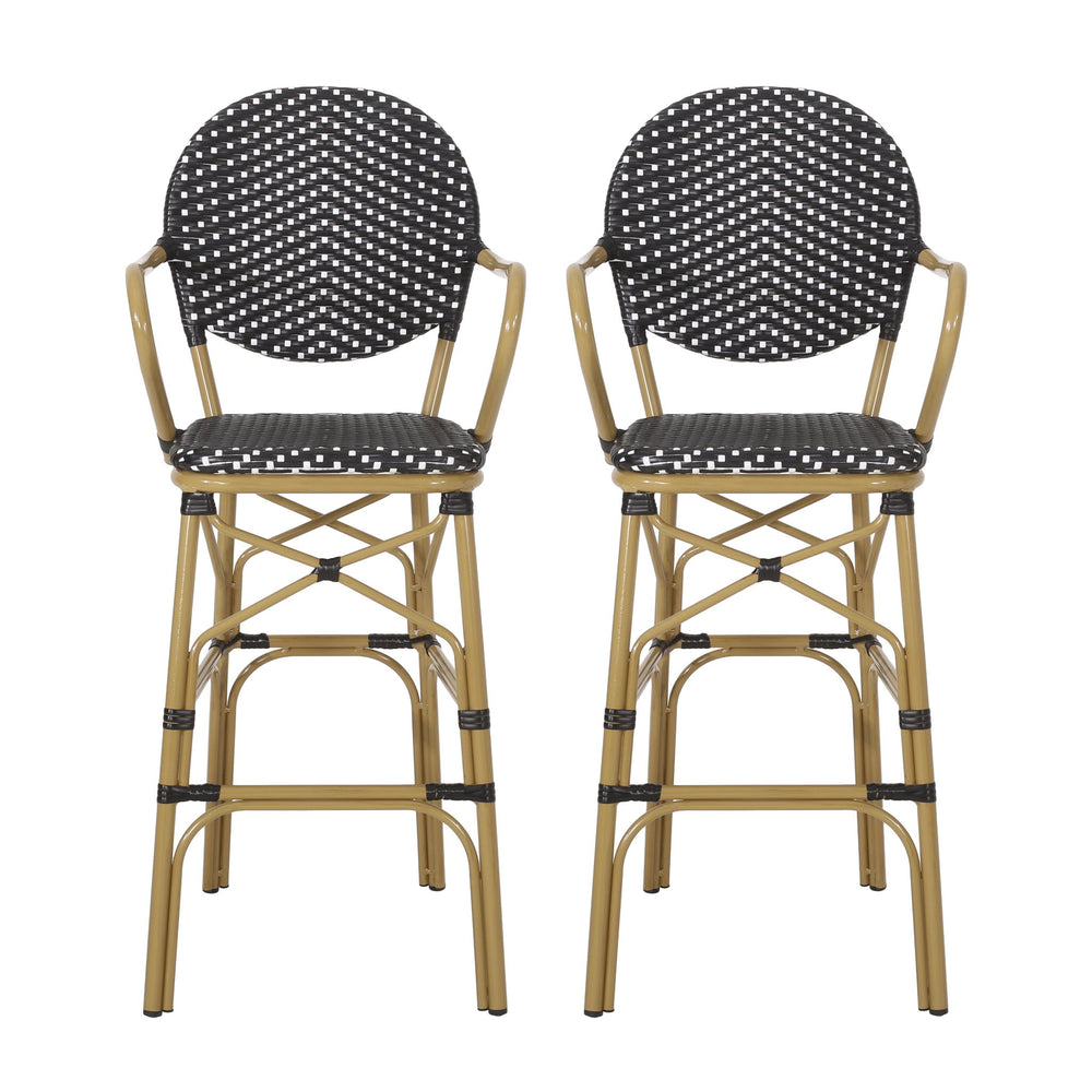 Outdoor Wicker And Aluminum French Barstools (Set of 2) - Black 21.65"W x 22.04"D x 45.66"H - 10.36 lb