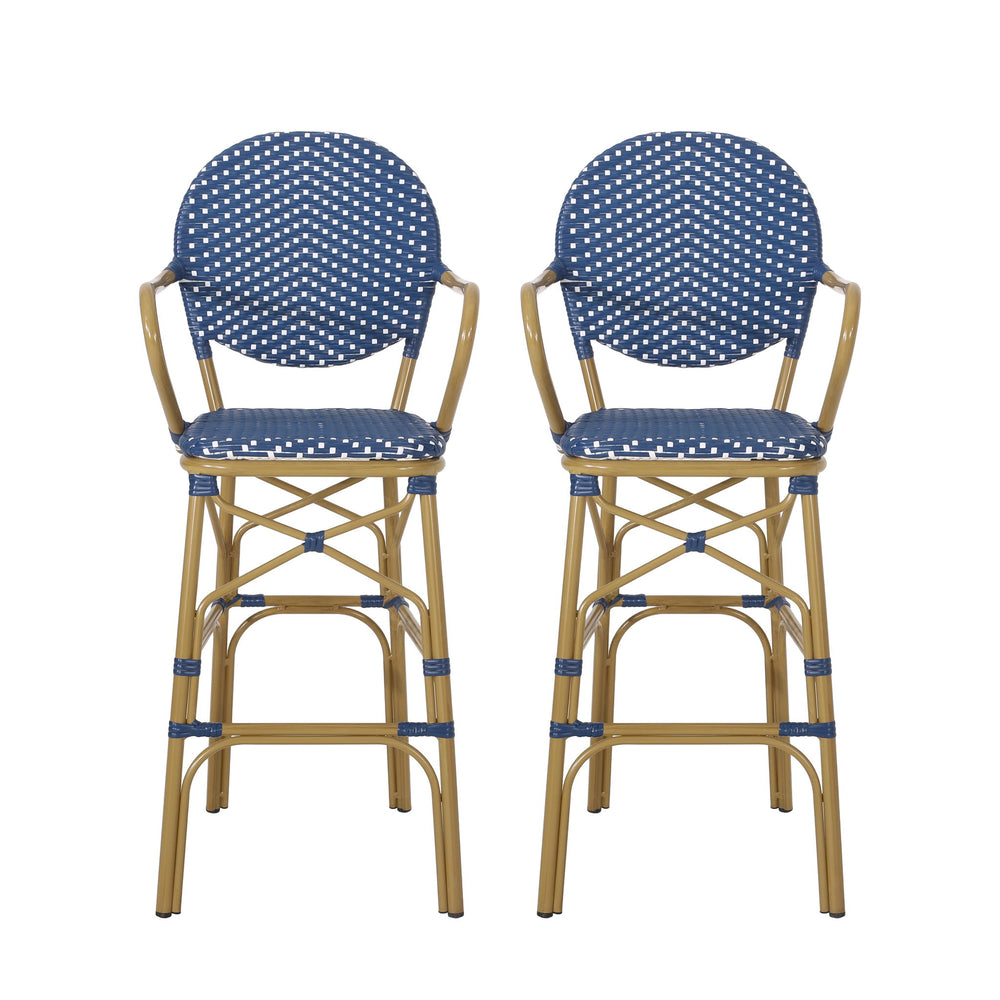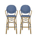 Outdoor Wicker And Aluminum French Barstools Set With Bamboo Print - Navy Blue 21.65"W x 22.04"D x 45.66"H - 10.14 lb