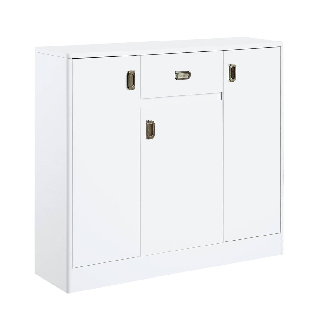 Versatile Storage: Includes one storage drawer and three doors with five adjustable shelves inside, perfect for organizing dinnerware, linens, and other items of various sizes.