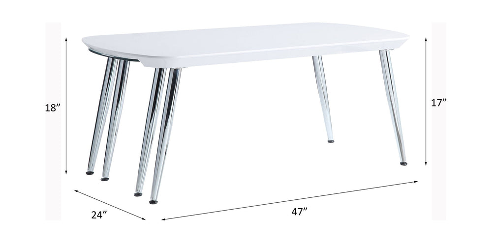 Modern Elegance: This coffee table features a sleek White and Chrome finish, blending modern elegance with functionality. Its high gloss finish adds sophistication, making it a striking centerpiece in any living room.