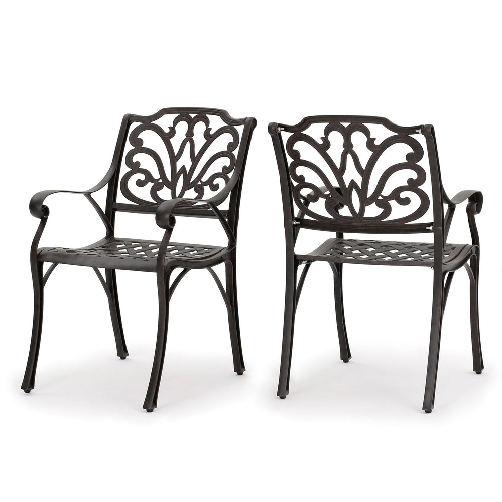 Patio Cast Aluminum Outdoor Dining Chairs (Set of 2) - Bronze 22.0"W x 27.0"D x 36.5"H - 16.27 lb