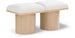 Bring valuable seating and remarkable style to your space with this Pavilion boucle fabric bench, an exquisite balance of style and usability for the entryway, bedroom, and beyond. Crafted from oak veneer with a natural finish, this bench has a 4-inch-thick seat cushion that's channel-tufted for a touch of luxury. The bench's columnar bases add a dash of art deco design, making it a captivating focal point in any room.