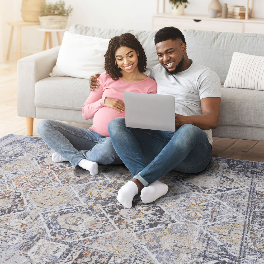 Payas - 6' X 9' Traditional Area Rug - Gray / Blue 93.0"W x 79.0"D x 0.28"H - 18.0 lb