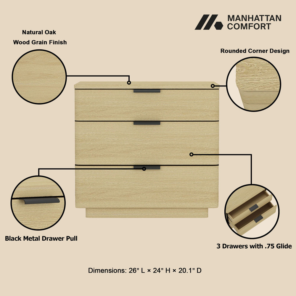 Modern Design: Minimalist silhouette with smooth rounded corners for a sleek, timeless look Functional Storage: Three drawers...