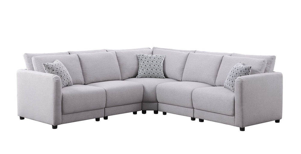 The design of the Penelope Sectional resonates with those looking for customization, style, and comfort. The modular aspect of this sectional sofa allows for multiple combinations in order to make design concepts come to life. This makes it easy to furnish any room of choice with a style of your choosing. Plus the linen fabric with 3 throw pillows will refresh any living room and brighten the day of guests and family. The foam filled seats in addition to the smooth surfaces of the double back cushions are designed to provide a premium relaxation experience for all.