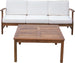 Set Inclusions: The set includes one left arm seat, one right arm seat, one armless seat, and one table, all crafted from acacia wood with cushions made from 100% polyester.