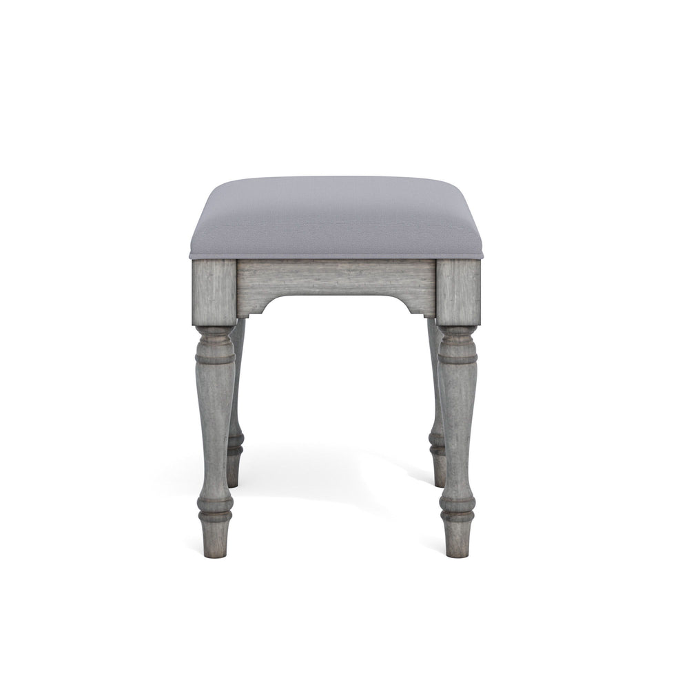 Comfortably prop up your feet in cottage-inspired style with the Plymouth ottoman. Featuring a distressed graywash finish and turned legs for a charming vintage look, this ottoman is upholstered in a soft, easy-to-clean coordinating fabric—making it ideal to use for impromptu seating when needed. Conveniently store the ottoman under the coordinating Plymouth sofa table when not in use.