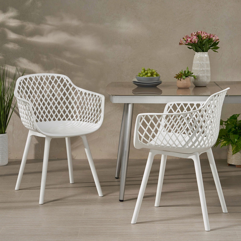MODERN DESIGN: With clean, precise lines, our dining chairs are the ideal modern accessory for your outdoor space. Finished with a perforated pattern designed for breathability, each chair not only offers a chic look but also provide incredible structure.