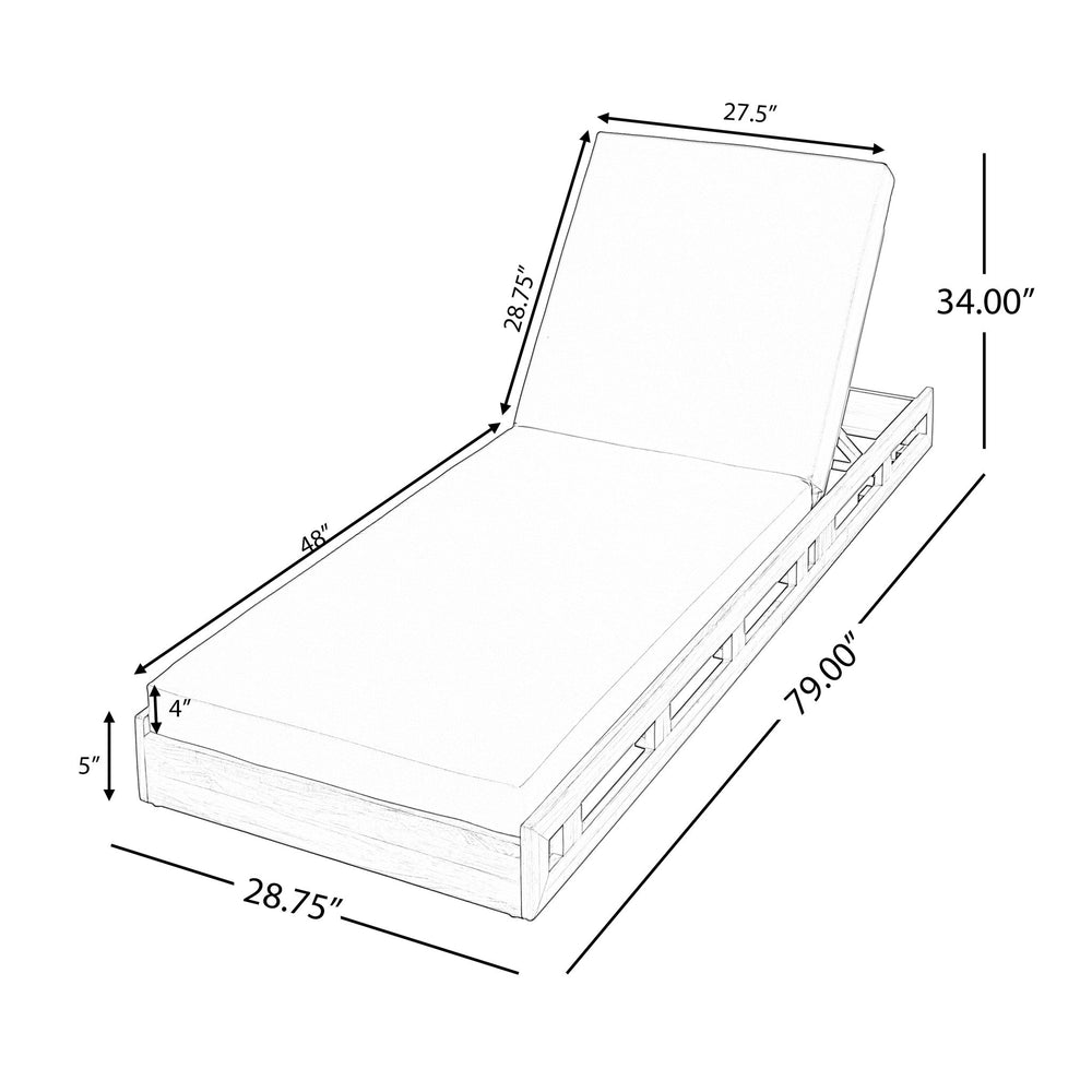 Premium Acacia Wood Lounge Chaise Set With Water Resistant Cushions, Adjustable Recline - Cream / Teak