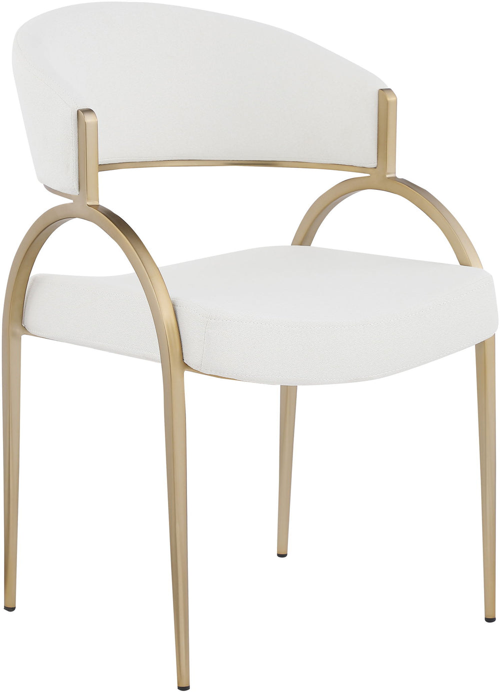 Give your dining room a touch of sophistication with this stunning Privet dining chair from Meridian Furniture. Its contemporary frame is comprised of iron, plate, foam, and fabric, with a brushed brass finish that shines. Soft beige linen-like polyester fabric upholsters the seat and back rest, providing you with a comfortable place to sit and relax while you dine with family and friends. Its contemporary design is perfect for any modern home.