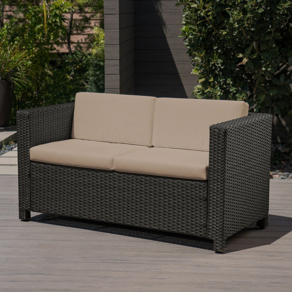 Puerta - Loveseat Outdoor Seating With Water Resistant Cushions - Dark Brown