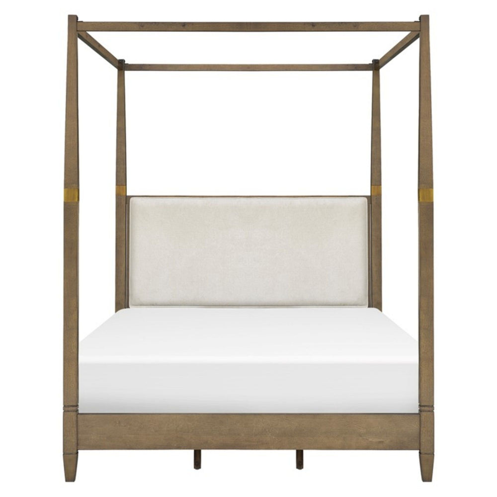 Queen Canopy Bed Frame With Upholstered Headboard - Brown