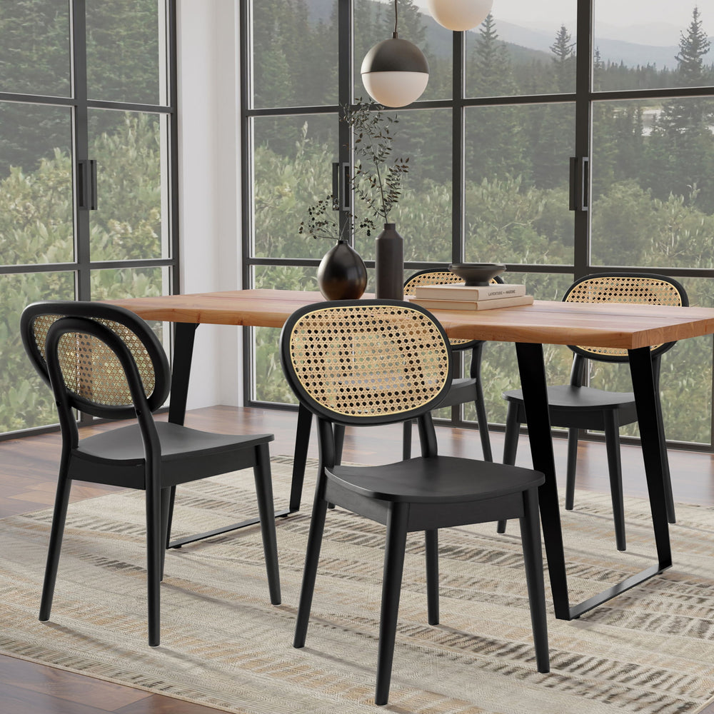 Features a natural rattan cane backrest, blending classic design with breathable comfort.