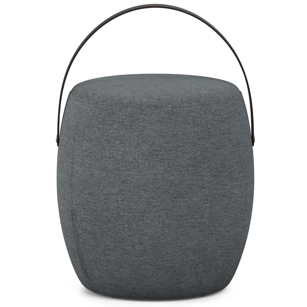 Hand Constructed using wood and foam Upholstered Features a space-conscious round shape with a wood handle detail...