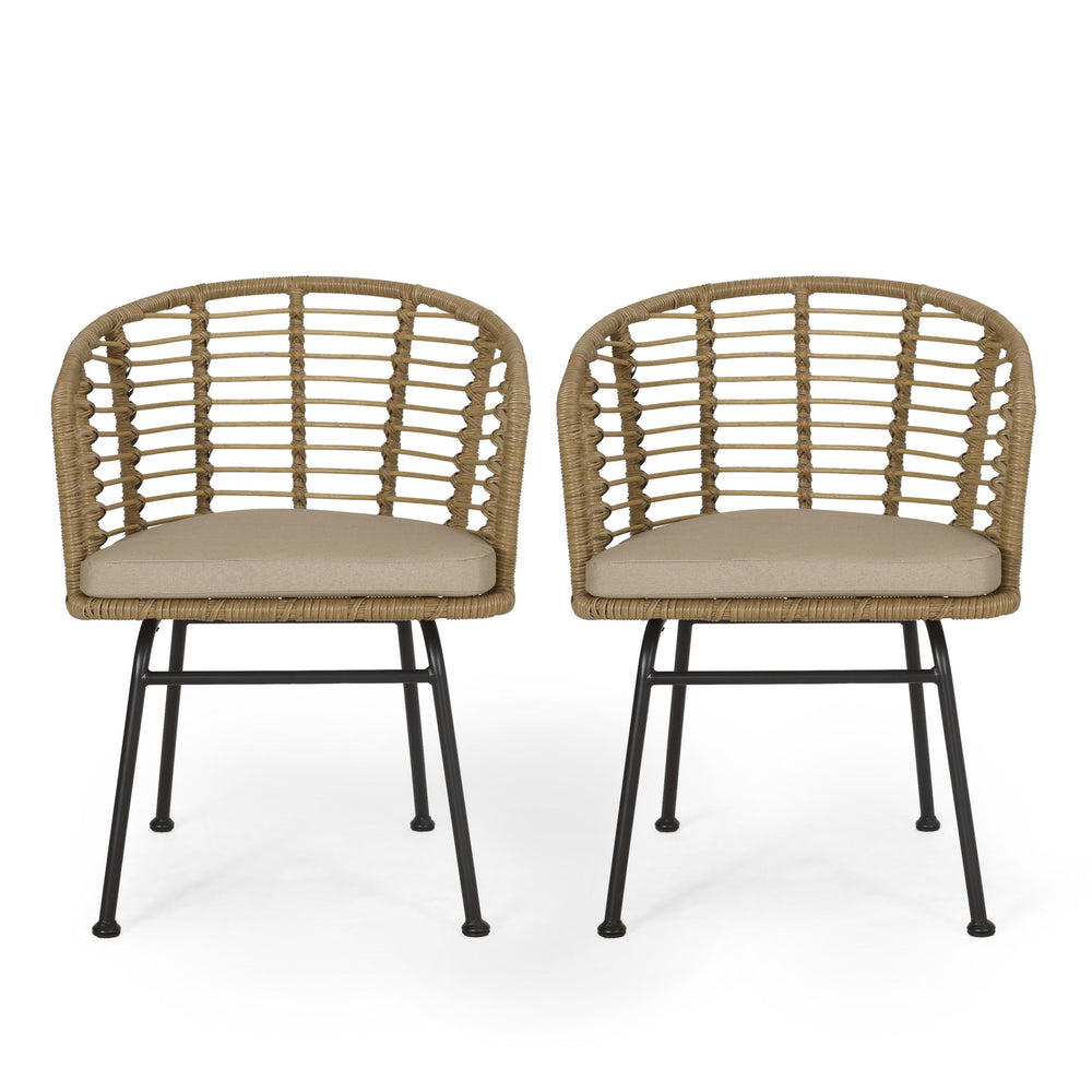 Randy - Modern Wicker Chair With Water Resistant Cushions - Brown / Beige 22.25"W x 22.75"D x 30.0"H - 12.57 lb