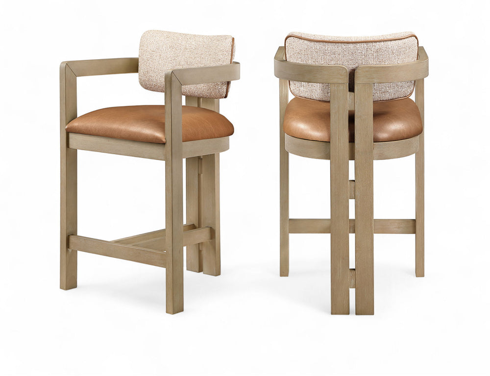 Ravina - Upholstered Counter Stool With Stained Natural Base Ravina - Vegan Leather and Linen Textured Fabric...
