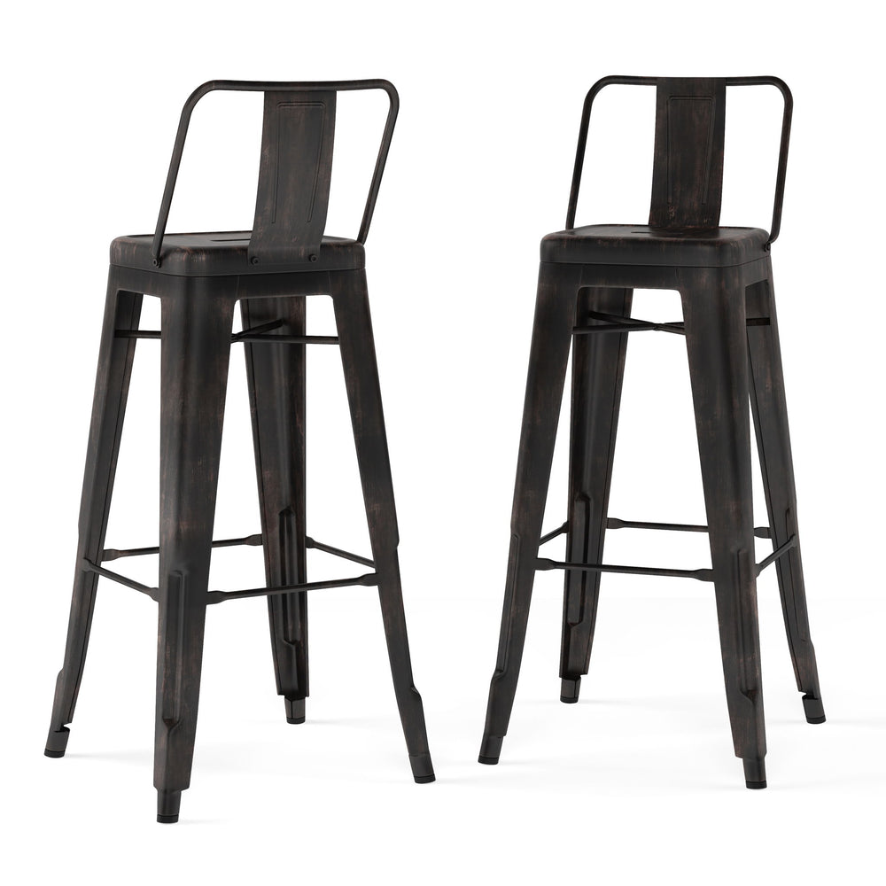 Rayne - Metal Bar Stool (Set of 2) - Distressed Black 17.3"W x 17.3"D x 39.4"H - 11.7 lb