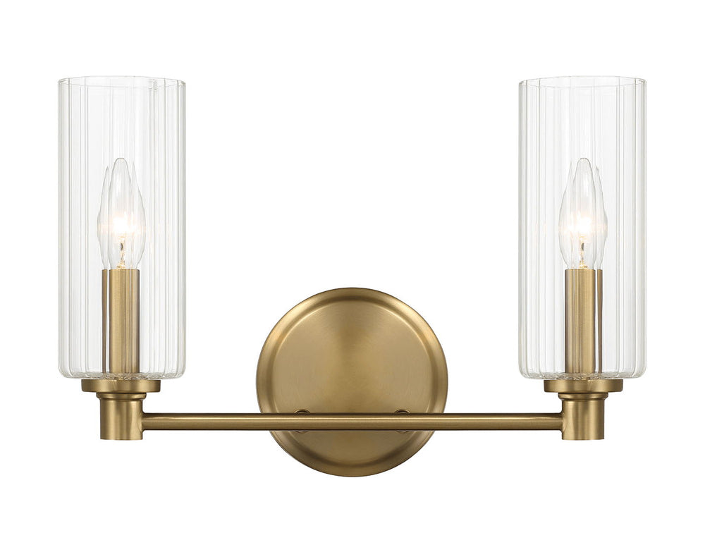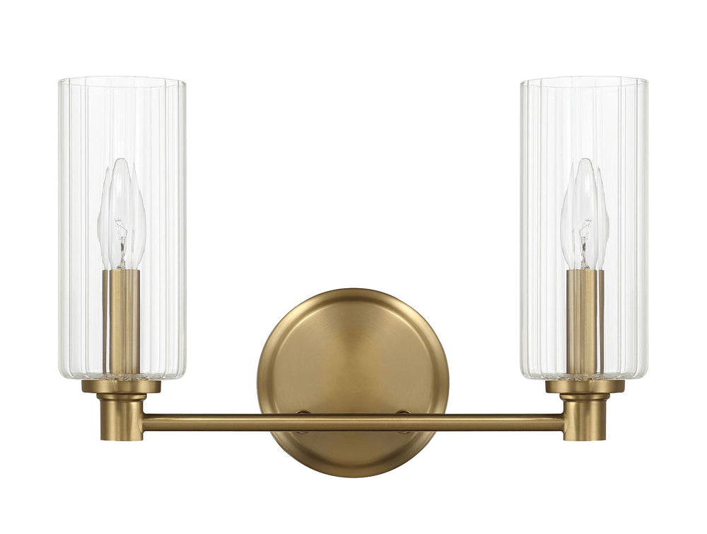 Luxurious Design: The Regal Double Light Vanity features clear ribbed glass and a satin brass finish, adding an elegant and sophisticated touch to any bathroom decor.