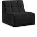 Bolster a contemporary vibe in your living room with this Relax black velvet armless chair. Soft velvet upholstery offers delicate comfort, making this chair cozy for anyone who sits in it. Biscuit tufting gives this chair texture and its lack of arms creates modern style, adding extra comfort and elegance to your living space. It s modular design allows you to create infinite configurations, making it a versatile piece to add to your home. A latch underneath the chair makes it easy to attach to other pieces.