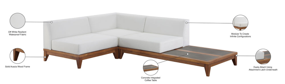 Rio - 3 Piece Modular Sofa With Table - Off White 128.5"W x 31.0"D x 25.0"H - 392.0 lb