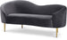 Get comfy while remaining chic in this elegant Ritz velvet loveseat. Plush-colored upholstery provides a soft texture that is pleasing to the senses, while its curved design offers a contemporary touch to your home furnishing. metal legs complement the loveseat's sophisticated color, creating a gallant piece anyone would be proud to display in their home.