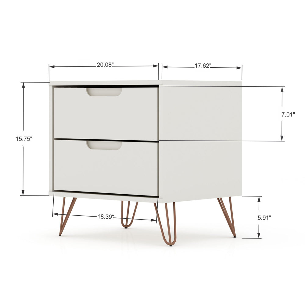 Rockefeller - Nightstand & 2 Drawers - Off White 20.08"W x 17.62"D x 21.65"H - 35.42 lb