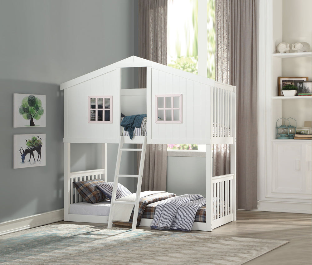 Rohan - Twin / Twin Bunk Bed - Pink / White 42.0"W x 84.0"D x 84.0"H - 172.0 lb