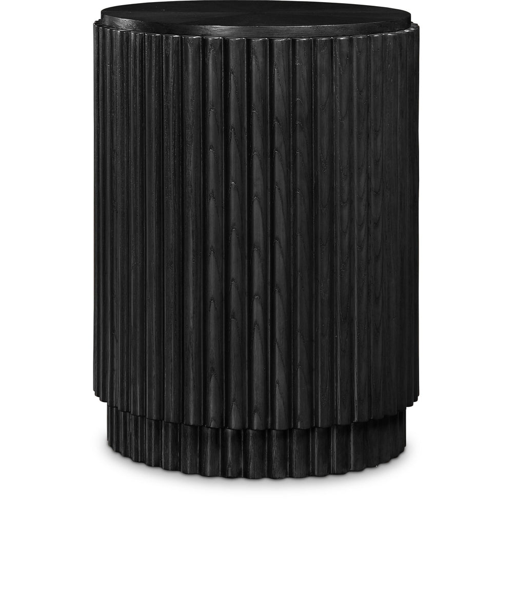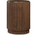 Indulge in the allure of this Ronin End Table. This table is sophisticated and charming, with a stunning finish and a fluted design that enhances the visual appeal of any living room or den. It's built from solid wood, MDF, and oak veneer, ensuring its durability and making it the focal point of any gathering. The natural wood grain variation gives this end table a unique appearance, while its mid-century design enables it to blend seamlessly into any space you choose to use it in.