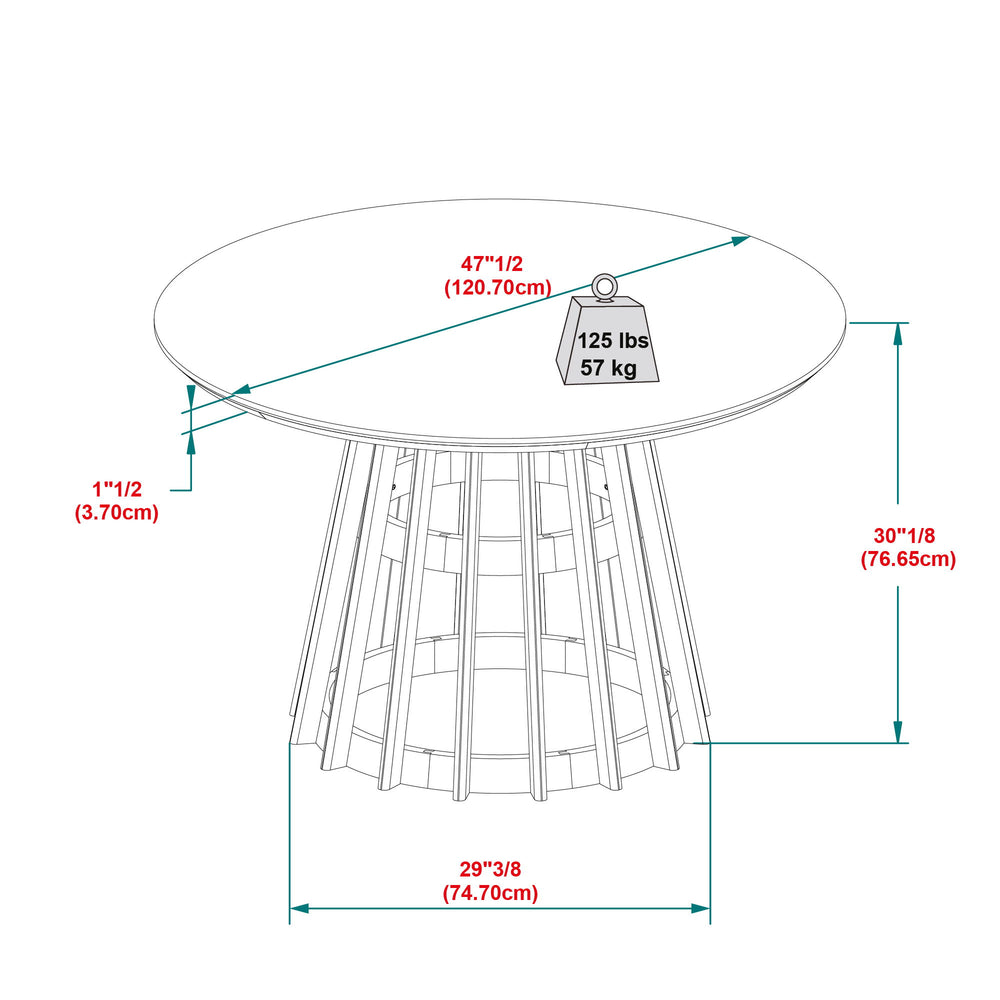 Round Tabletop: Enjoy spacious dining experiences without sacrificing intimacy with our table's round tabletop design, thoughtfully crafted to prevent crowding and create a cozy atmosphere perfect for lively conversations and memorable gatherings.