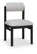 Soft textures and timeless design meet in the Roundhill dining chair, upholstered in a rich linen-textured fabric. A black wood frame enhances its art deco silhouette, bringing warmth and sophistication to your dining space. Whether styled solo or paired with a set, this chair elevates the ambiance with understated elegance.
