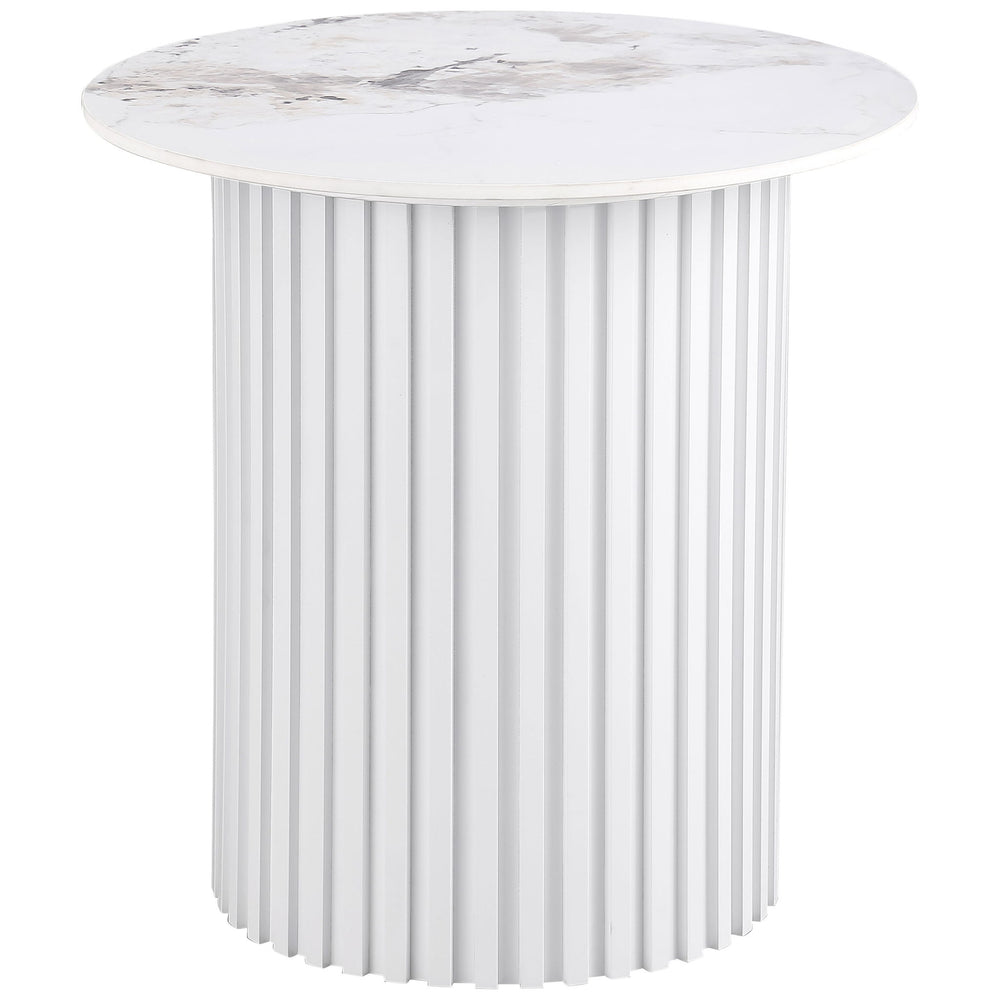 Rowena - Round Sintered Stone End Table - White Faux Marble 23.0"W x 23.0"D x 23.5"H - 34.1 lb