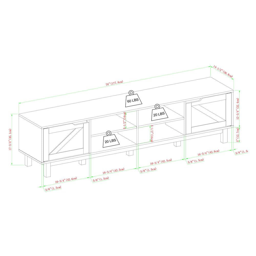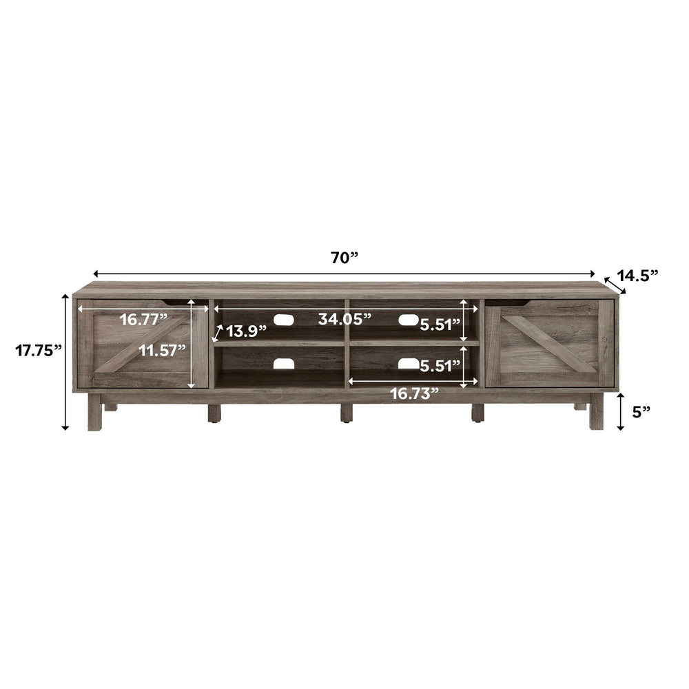 Rustic Barndoor Open-Storage TV Stand For TVs Up To 80" - Gray Wash 70.0"W x 14.5"D x 17.75"H - 70.0 lb