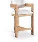 Elevate your counter seating with the Sacha linen textured fabric upholstered counter stool, a perfect blend of refined texture and timeless craftsmanship. Wrapped in rich polyester linen-textured fabric with a striking two-tone weave, this stool offers both depth and sophistication. The solid wood frame, finished in a natural tone, showcases elegant fluted detailing, adding a touch of classic artistry.