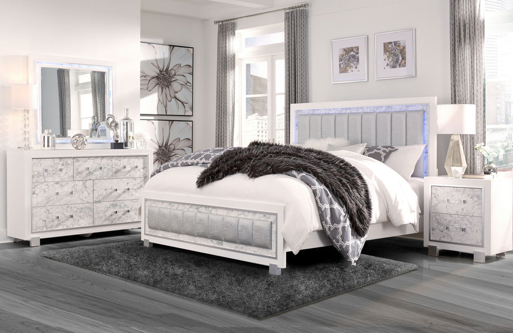 Want to get away? Our Santorini bedroom collection features a Coastal Contemporary design with decorative faux marble accents, elegant acrylic hardware and dazzling ambient LED lighting. Sure to transform any bedroom into your own personal island retreat.