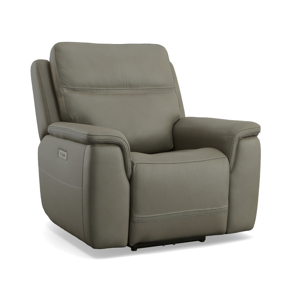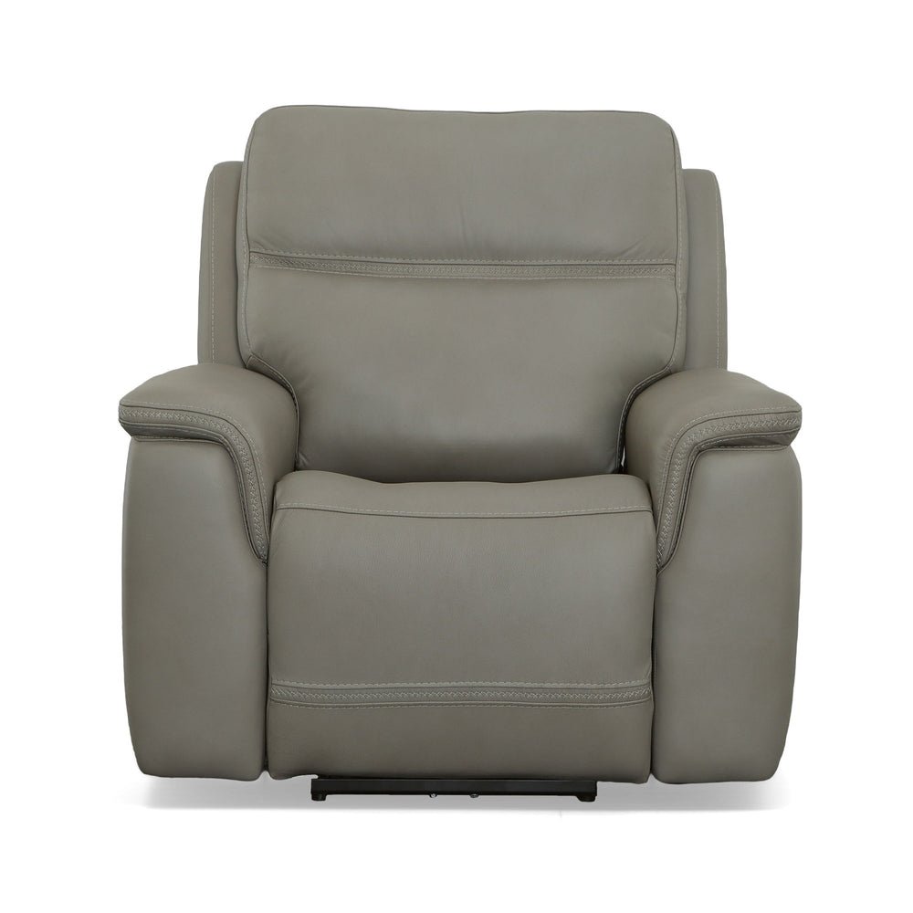 Transform your living space with the Sawyer power recliner with power headrest and lumbar, a perfect blend of comfort and style. This stunning design features high-quality, top grain leather upholstery with unique cross-stitching and a distinct arm silhouette, adding a sophisticated touch to any room.