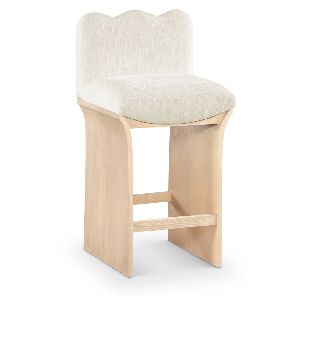 Sculptural curves and plush chenille transform the Shaw counter stool into a show-stopping statement piece. Anchored by a natural oak veneer base, this art deco-inspired stool radiates bold sophistication. Elevate your dining space with a striking blend of comfort and couture-worthy style.