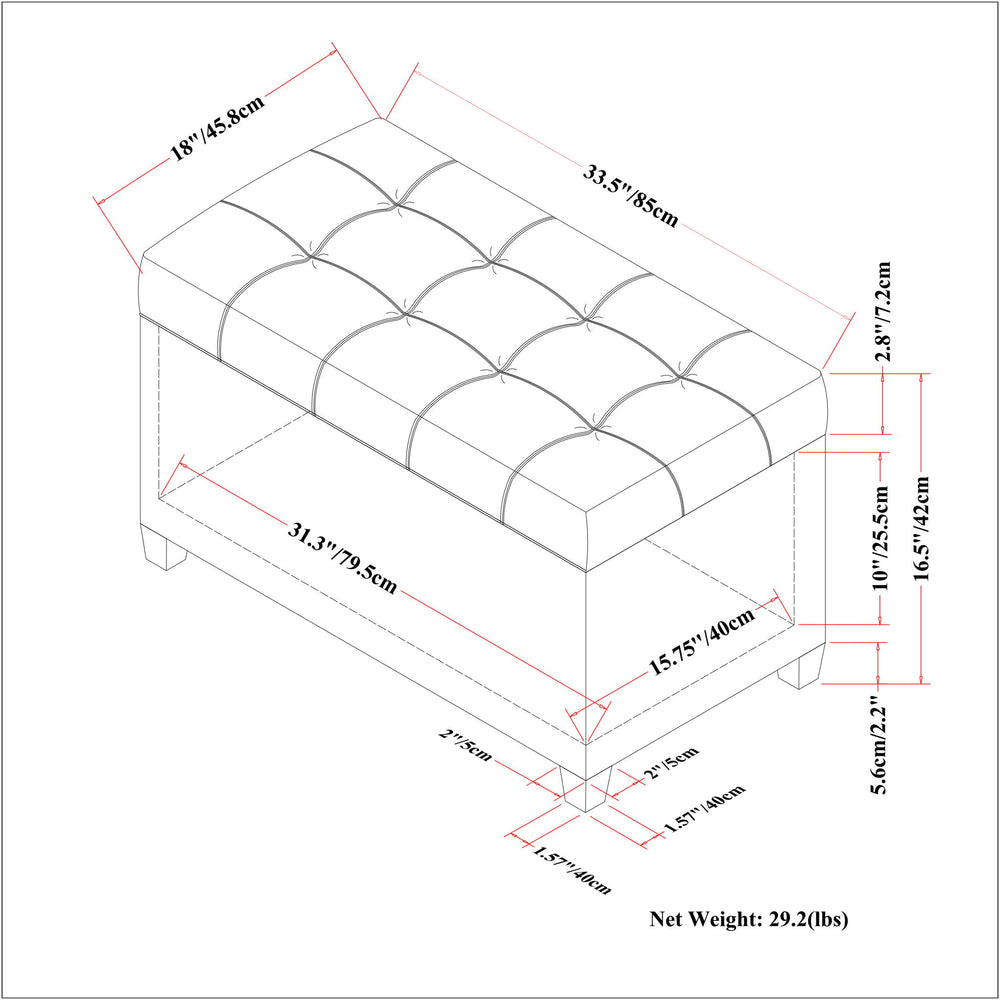 Sienna - Storage Ottoman Bench - Chocolate Brown 33.3"W x 17.5"D x 17.1"H - 27.6 lb