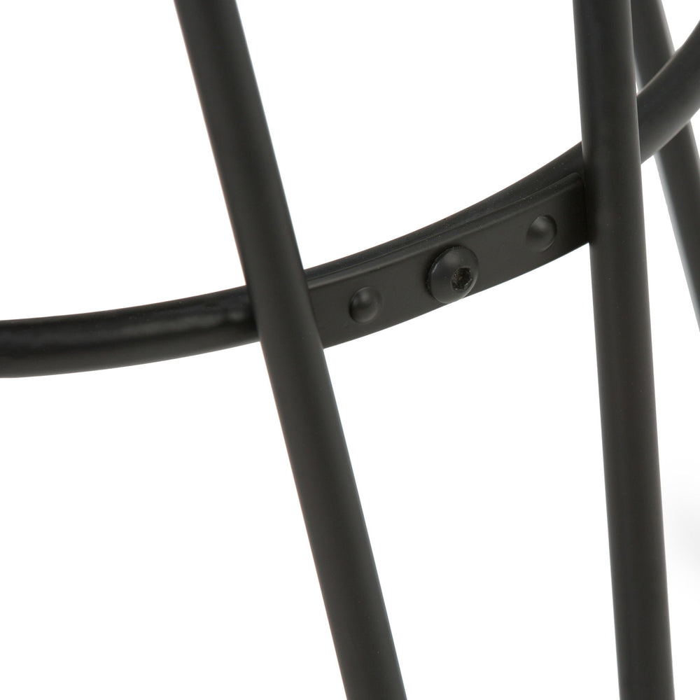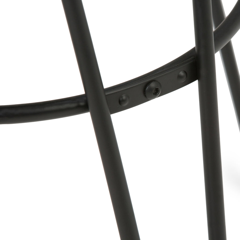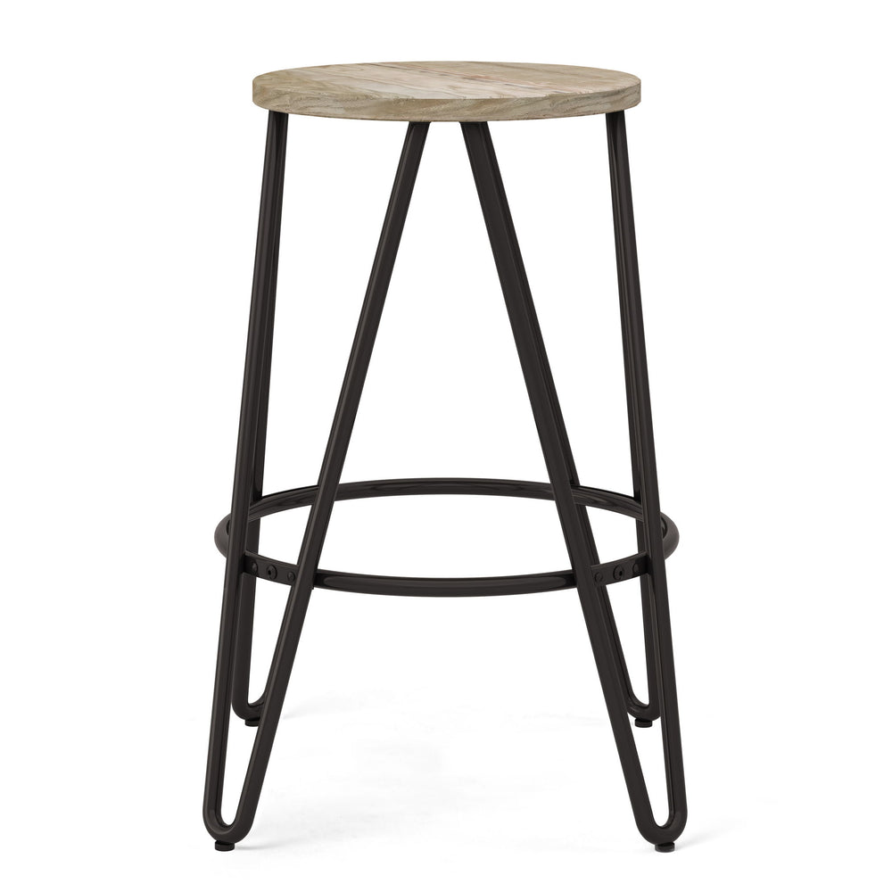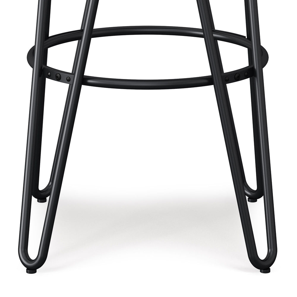 Features round solid wood seat and hair pin legs, comfortable foot rest provides extra stability