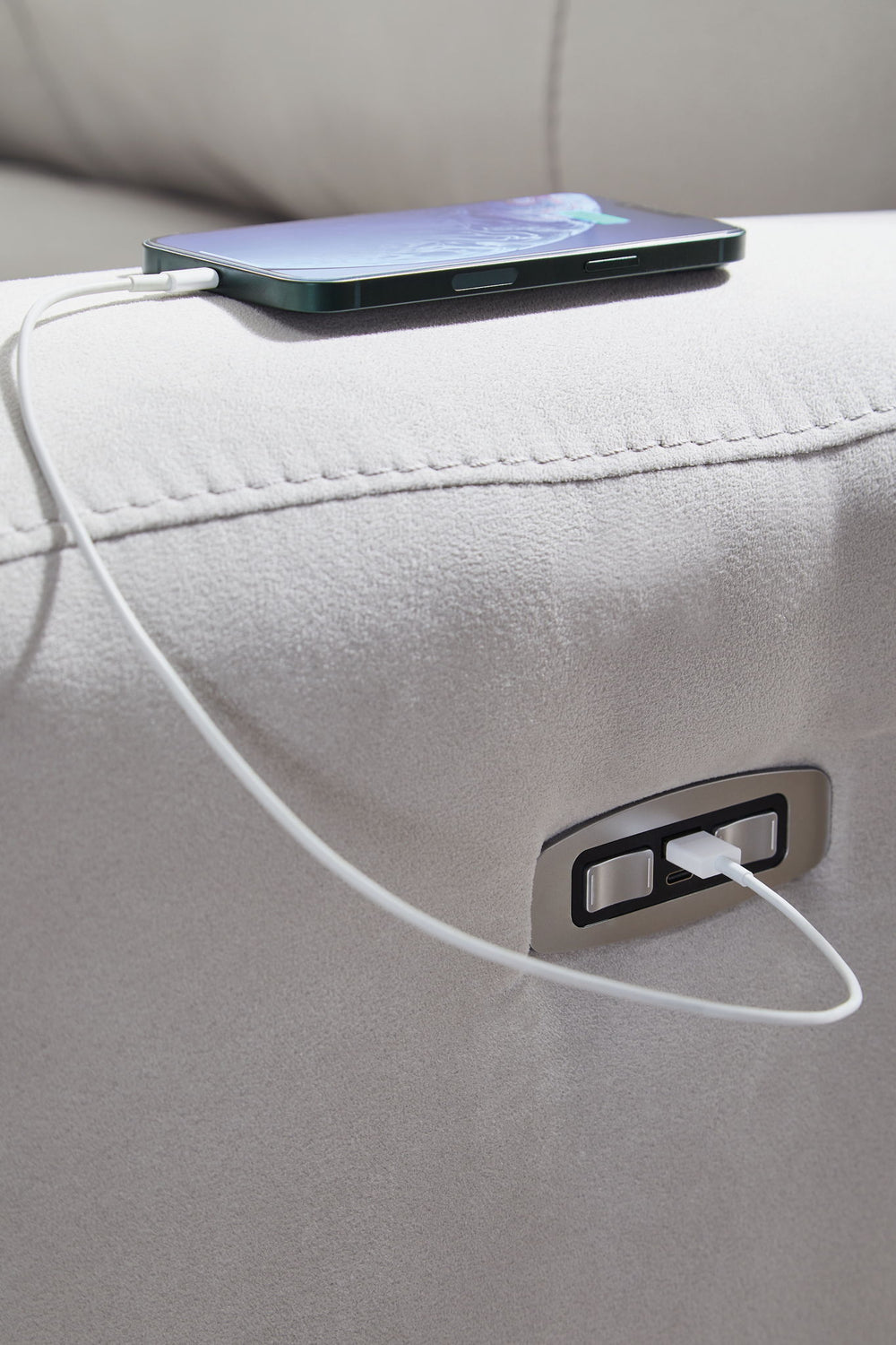 Social Pointe - 3-Piece Power Reclining Sectional - Pearl / Ash 116.0"W x 41.0"D x 43.0"H - 432.0 lb