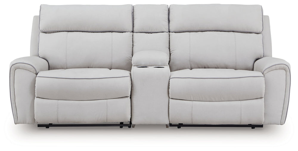 Social Pointe - 3-Piece Power Reclining Sectional With Storage Console - Pearl / Ash 97.0"W x 41.0"D x 43.0"H - 419.0 lb