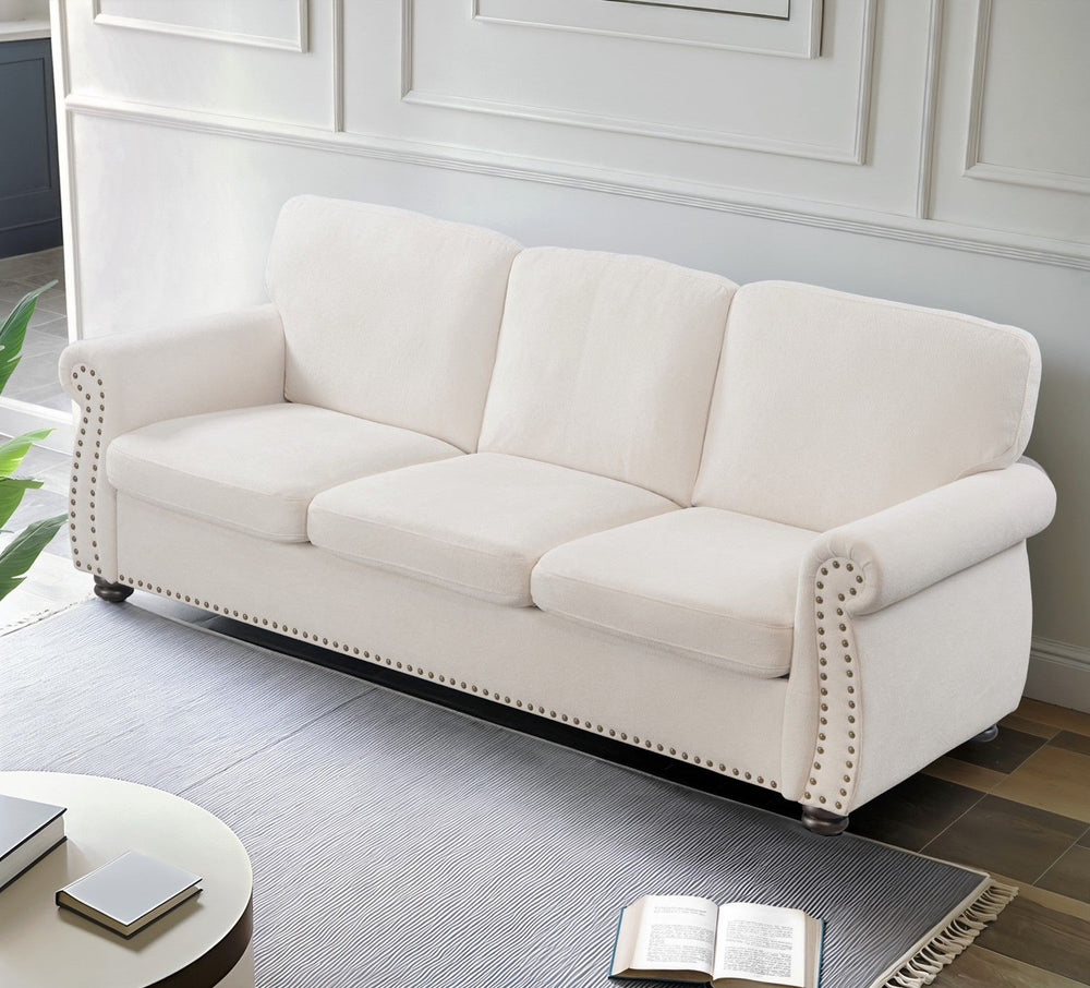 Soft Sofa, Upholstered 3 Seater Couch, Loose Back Cushions And Turned Legs - Ivory 90.35"W x 34.25"D x 34.25"H - 107.8 lb