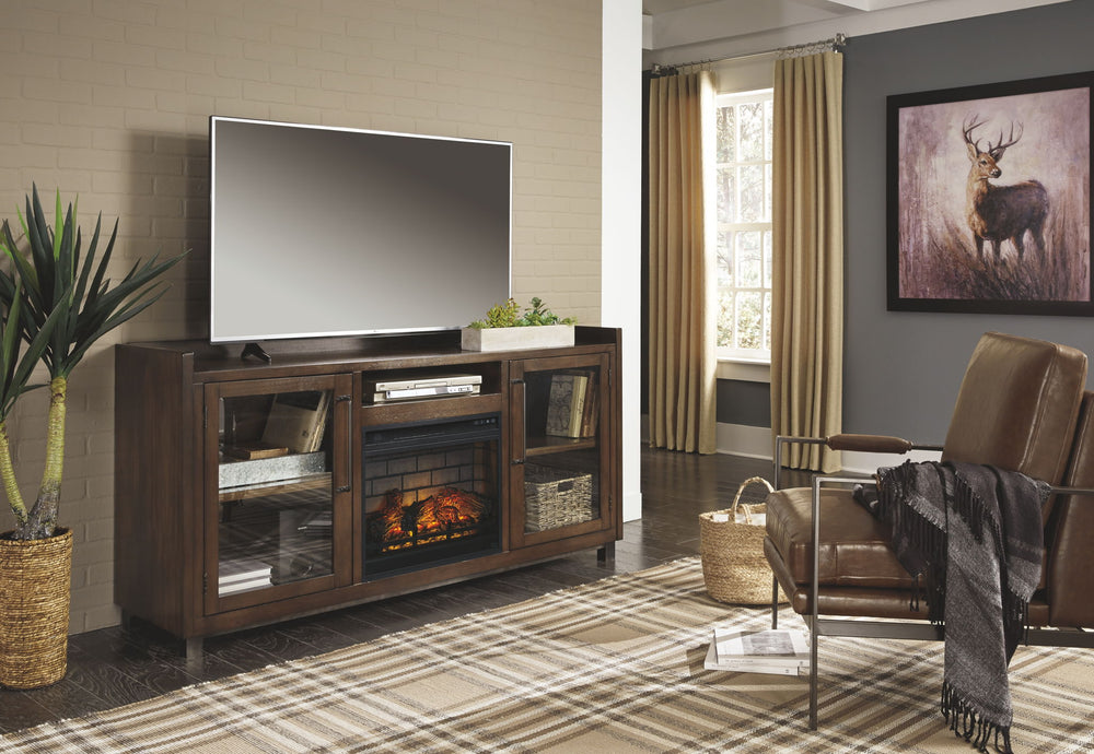 Starmore - 4 Pc. - Entertainment Center - 70" TV Stand with Faux Firebrick Fireplace Insert - Brown / Gunmetal 359.0 lb
