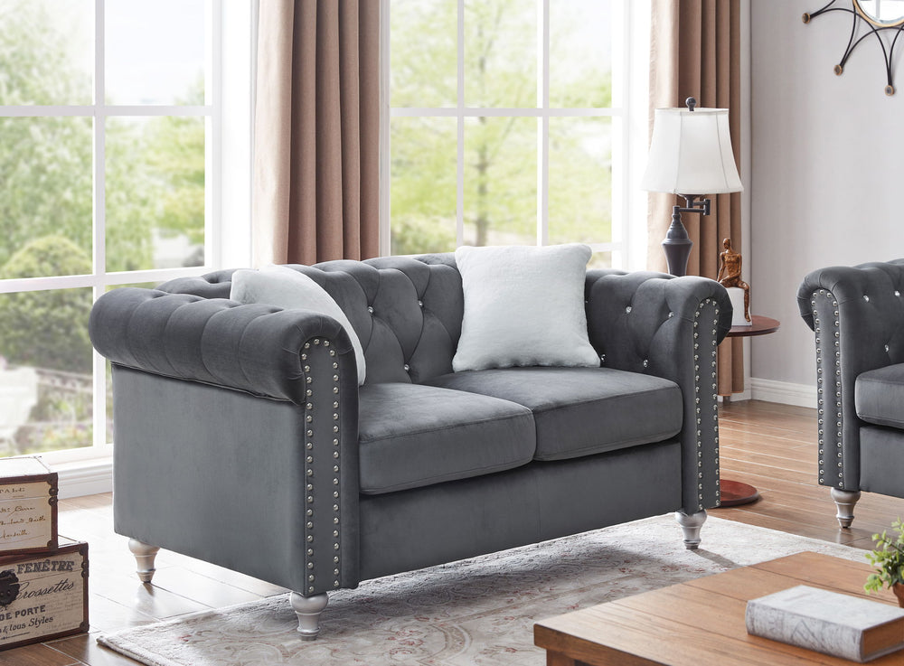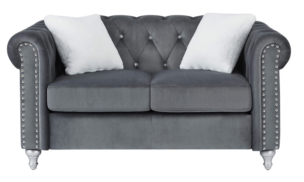 Contrasting Throw Pillows: Included contrasting throw pillows complete the classic aesthetic of the loveseat.